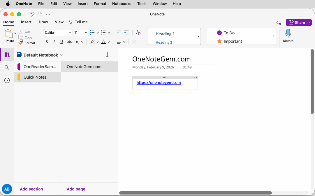 Using Mac OneNote to View "Default Notebook"