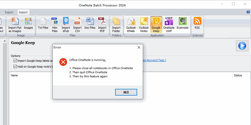 Hello, what is wrong with this situation when click “Import OneNote UWP” and how should I deal with it?